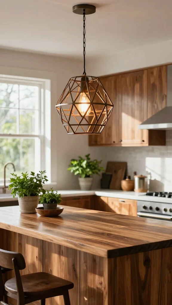 Choose pendant lighting with geometric patterns to blend modern aesthetics with classic craftsman influences.