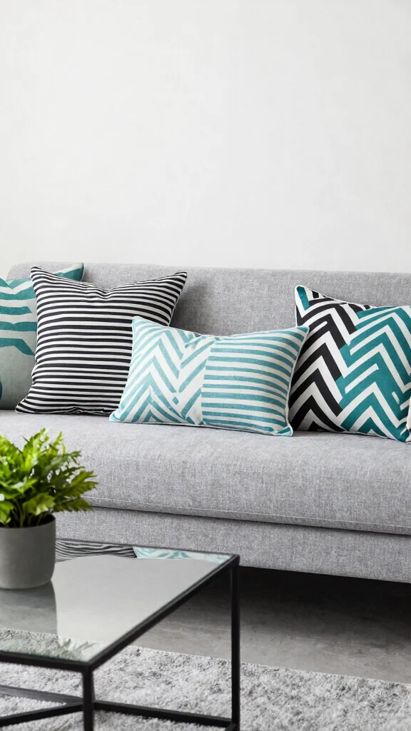 Mixing geometric patterns—like stripes paired with chevrons—adds depth and dimension to your decor.