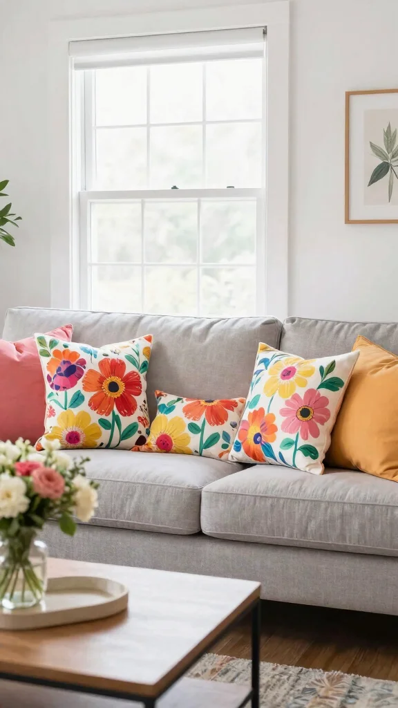Floral print pillows can bring a lively and fresh touch, perfect for seasonal decor changes.