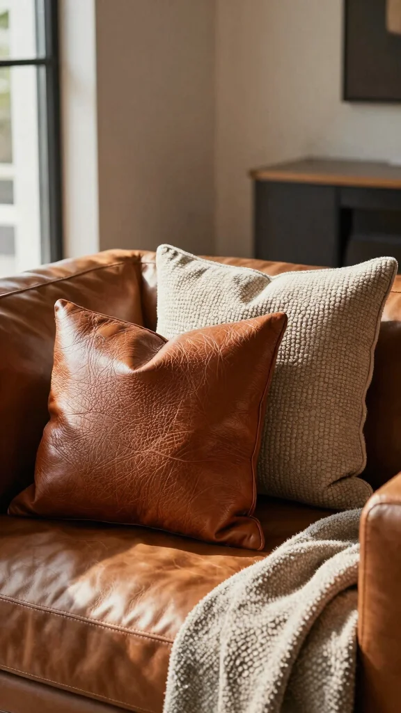 Fun fact: textured leather pillows can boost perceived coziness on your sofa by up to 25%. For the leather couch throw pillows, cluster pebbled, quilted, and distressed styles to add immediate depth, then finish with a contrasting throw blanket.