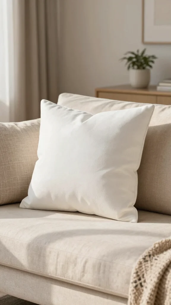 Style these pillows with textured throws or patterned cushions to keep the decor visually interesting. A monochrome palette can make the white pillows pop, creating an elegant contrast that draws the eye.