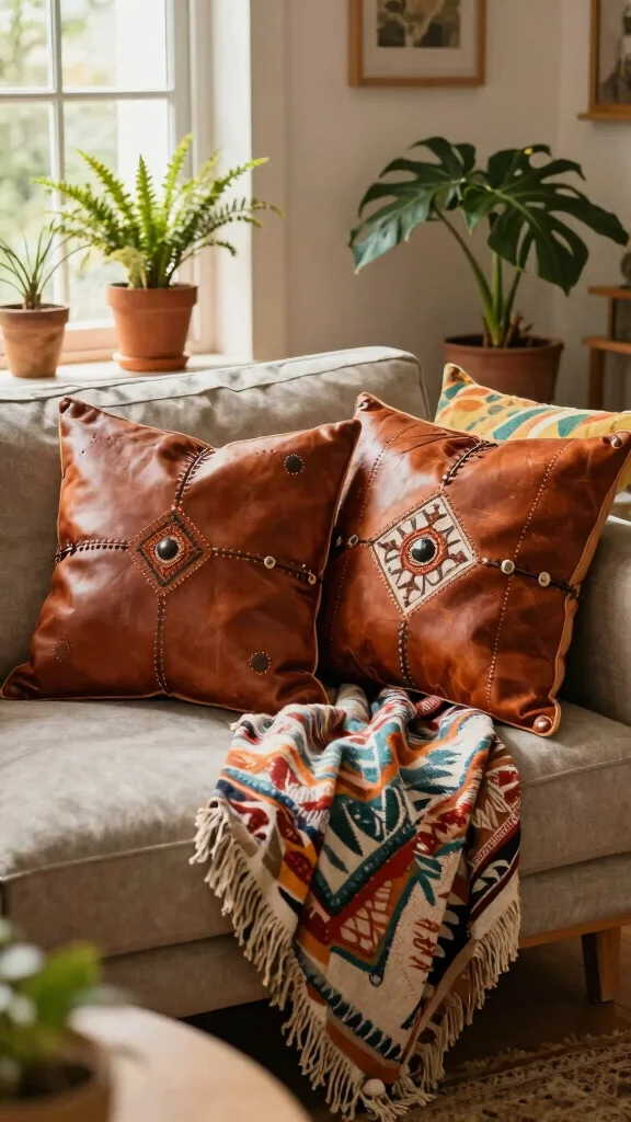 8. Bohemian Leather Pillows