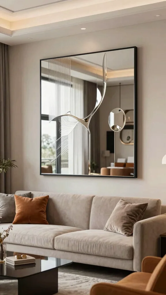 Use large decorative mirrors as focal points to enhance the aesthetic and reflect light in your living room.