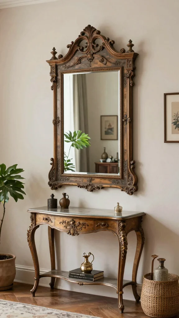 – Wall Placement: Hang vintage mirrors above focal points like a fireplace or sofa to complement your decor.