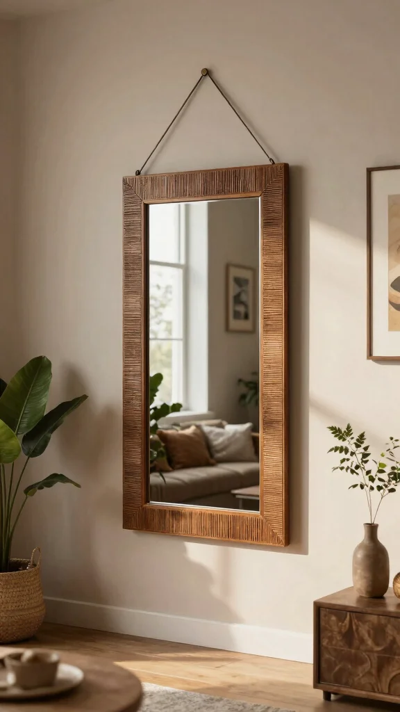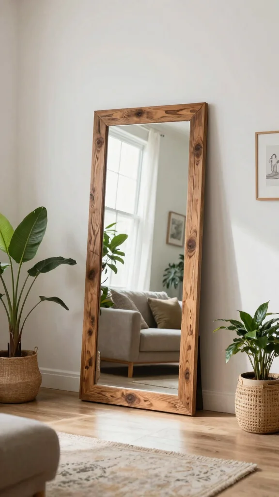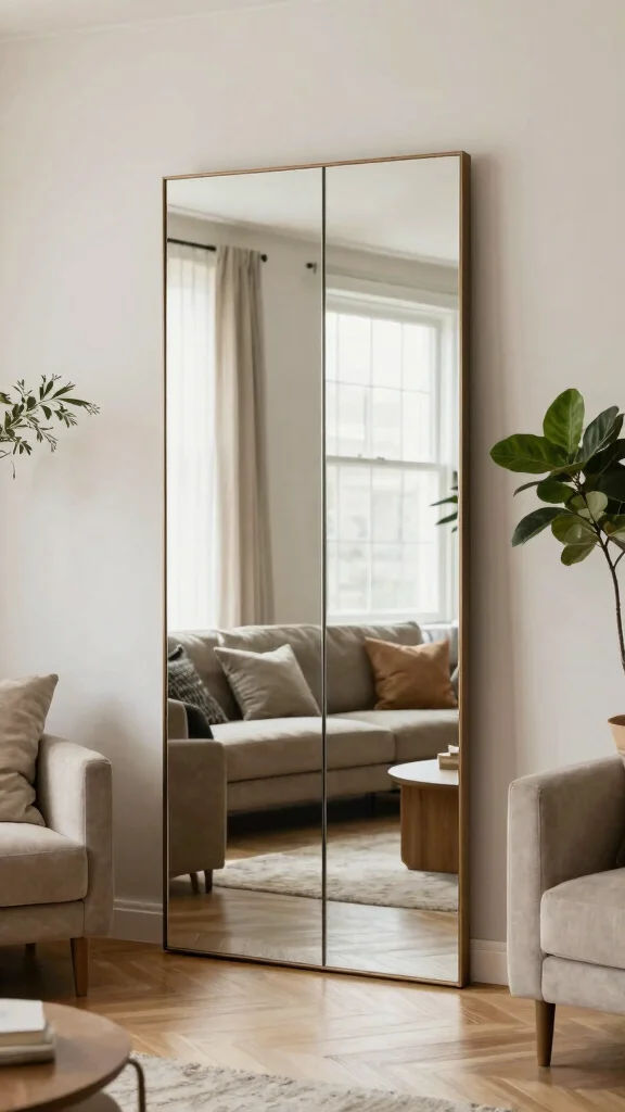Floor mirrors are a fantastic way to create the illusion of depth and spaciousness in your living room. Leaning a large mirror against a wall can enhance the room’s openness while beautifully reflecting light.
