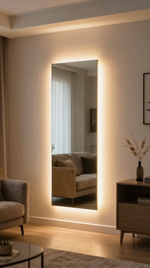 Illuminated mirrors enhance both light and style, making your living room practical and beautiful.