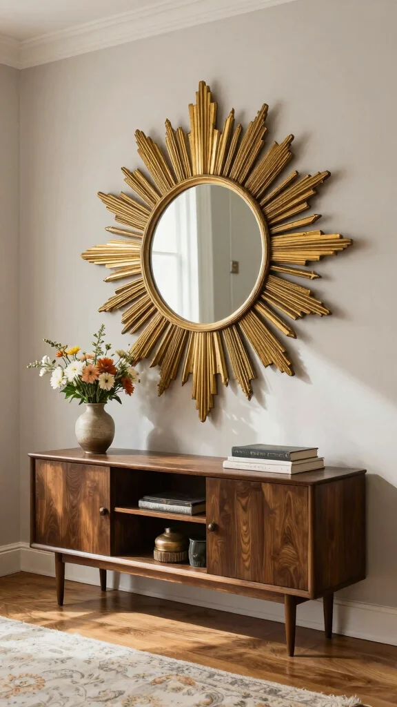 Incorporate vintage sunburst mirrors to add a charming focal point that radiates warmth and style.