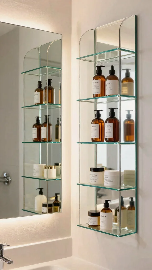Adding decorative mirrored shelves elevates your decor while ensuring it remains practical and organized.