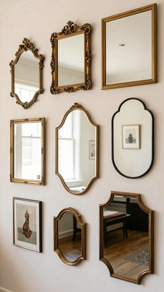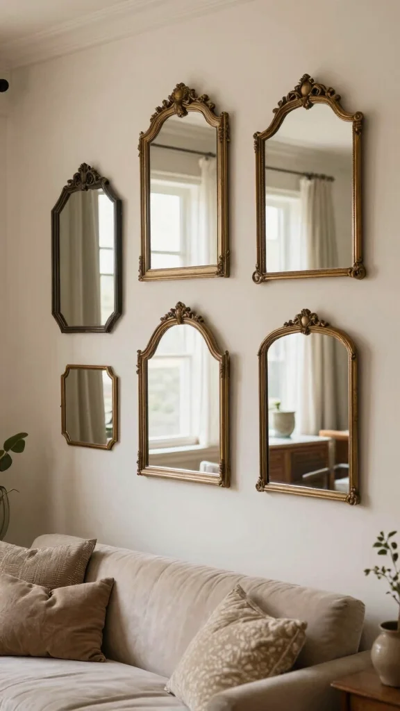 Group vintage mirrors in a cluster for a unique display that showcases various styles and enhances visual interest.