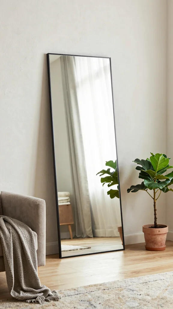 Position leaning floor mirrors against walls for an effortlessly chic look that adds depth without permanent installation.