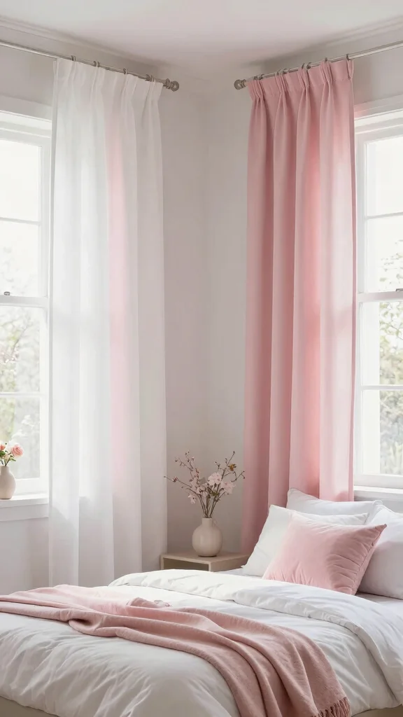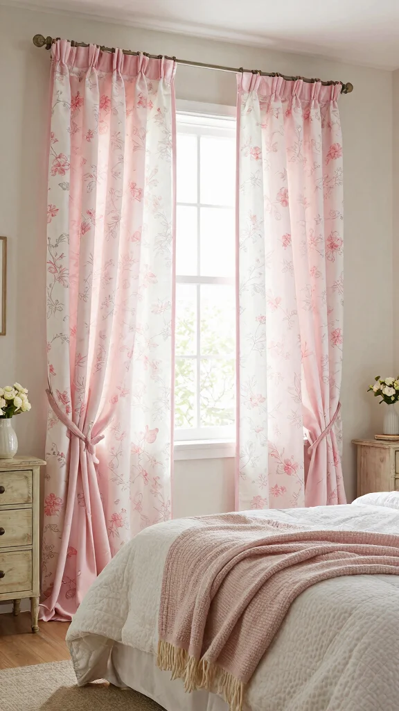 16 Pink and White Curtains Bedroom Ideas for a Soft Romantic Touch Posted on April 26, 2026 By Smith Mary Affiliate Disclosure: If you buy through links on our site, we may earn a small affiliate commission to help support the blog – at no extra cost to you. It never influences our product selection process. Thank you!Redecorating your bedroom can spark a fresh sense of comfort and joy, especially when you incorporate delightful elements like pink and white curtains. These colors bring a soft, romantic touch that can transform any space into a serene oasis. Whether you are looking to create a cozy retreat or simply want to refresh your decor, this post is for you. I’ve gathered a collection of 16 inspiring ideas that celebrate the beauty of pink and white curtains while enhancing your bedroom’s overall vibe. If you’re someone who adores soft bedroom decor and wants to create a romantic atmosphere, you’re in the right place. From bohemian styles featuring floral designs to elegant ruffled curtains, these ideas will cater to your personal taste and style. You will discover tips for layering textures, choosing the right patterns, and implementing playful accents that turn your bedroom into a dreamy haven. Get ready to dive into a world of delightful bedroom styling tips that combine functionality with aesthetics. You’ll find practical examples of how to use pink and white home accents to create a soft, inviting atmosphere. Whether you want to embrace vintage charm or opt for modern minimalism, this guide will provide you with everything you need to know to achieve your ideal bedroom look. Key Takeaways – Variety of Styles: Explore different styles such as bohemian, vintage, and modern minimalism using pink and white curtains to suit your unique taste. – Layering Techniques: Learn how to layer textures and fabrics to create a cozy and inviting space that feels both warm and stylish. – Pattern Play: Discover playful curtain patterns, from floral designs to geometric shapes, that can bring personality and charm to your bedroom. – Romantic Touches: Implement romantic accents and designs, such as draped canopies or shimmery fabrics, to enhance the cozy atmosphere of your bedroom. – Practical Tips: Get actionable advice on choosing the right curtain styles and colors that complement your overall bedroom decor for a harmonious look. 1. Bohemian Bliss with Floral Patterns Save Infuse your bedroom with a bohemian spirit through floral-patterned pink and white curtains that breathe life into your space. This vibrant combination creates a lively ambiance while maintaining a soft and inviting atmosphere. Imagine surrounding yourself with designs that remind you of blooming gardens, enhanced by natural wood furniture and earthy tones for that authentic boho feel. These curtains serve as a beautiful focal point, effortlessly elevating your decor. To achieve a cohesive look, consider adding floral accents throughout your room, like throw pillows or wall art, that echo the curtain patterns. Opt for light, airy fabrics to keep the space feeling open and breezy. A cozy rug and some greenery will round out the soft, inviting decor beautifully. Here are some ideas to enhance this theme: – Pair floral curtains with open shelving made from reclaimed wood. – Install a natural fiber rug to complement the earthy colors. – Use macramé hangings to accentuate the floral prints. This approach creates a warm, welcoming environment where nature feels like an integral part of your space. The interplay of textures and materials enhances the overall aesthetic, making your bedroom a true retreat. 2. Timeless Elegance with Ruffled Curtains Save For a touch of sophistication, ruffled pink and white curtains can elevate your bedroom decor to new heights. Their graceful cascades add a sense of movement and elegance, perfect for a luxurious and romantic atmosphere. Soft pinks paired with crisp whites create a balanced, airy feel, while vintage-inspired furniture pieces further enhance this timeless look. To achieve this elegant style, consider adding gold accents through lamps or picture frames that complement the curtains. A silk or satin bedspread in matching pink can tie the entire look together, adding a luxurious sheen that beautifully contrasts with the ruffled texture. Here’s how to style your space: – Use blackout liners for functionality and chic design. – Incorporate vintage furniture to enhance the classic vibe. – Regularly fluff the ruffles to maintain their aesthetic appeal. This combination brings a refined elegance to your room, while the textures create an inviting space for relaxation. Key Trade-offs & Our Top Pick Option 1: Bohemian Bliss with Floral Patterns – Pros: – Adds a vibrant and playful touch to your bedroom. – Floral designs can create a soft, inviting atmosphere. – Cons: – May clash with minimalist or modern decor styles. – Requires careful color matching with other decor elements. – Best for: Those looking to create a cheerful and lively atmosphere in their bedrooms. Option 2: Timeless Elegance with Ruffled Curtains – Pros: – Provides a classic and sophisticated look. – Ruffles can soften harsh lines in the room, adding a romantic vibe. – Cons: – Can be more expensive than simpler curtain styles. – Requires more maintenance as dust and dirt can accumulate in the ruffles. – Best for: Individuals wanting to infuse a touch of luxury into their bedroom decor. Option 3: Whimsical Touch with Ombre Curtains – Pros: – Unique gradient designs can create a stunning focal point. – Ombre can blend different colors beautifully, offering design versatility. – Cons: – Might not suit every bedroom theme, especially traditional ones. – Color fading may happen if exposed to direct sunlight for long periods. – Best for: Creative souls who love experimenting with bold designs and color schemes. Option 4: Luxe Vibe with Sheer Fabrics – Pros: