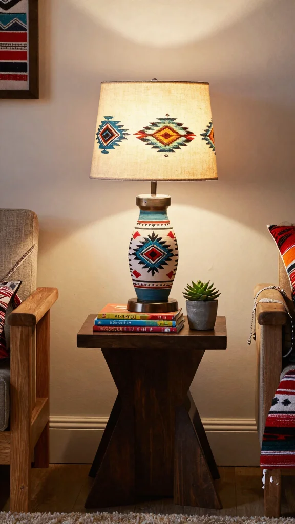 Did you know Southwestern table lamps with Native American patterns can boost a room’s warmth by up to 30%? The bold colors and intricate designs turn side tables into cozy focal points, making your southwest lighting fixtures feel inviting and cohesive.