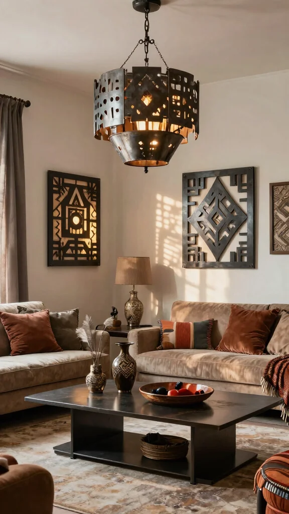 Opt for finishes and materials that feel authentic and respectful: hammered iron or copper, carved wood, terracotta, and natural fabrics. Look for lighting with subtle geometric motifs that nod to Native American design accents while avoiding clichés. Support artisans or brands that source ethically and offer fair-trade pieces. Use these accents sparingly—think one or two fixtures or a single lampshade—so they complement rather than compete with the overall southwest lighting fixtures look. This keeps the space warm and inviting and aligns with southwestern home decor principles.