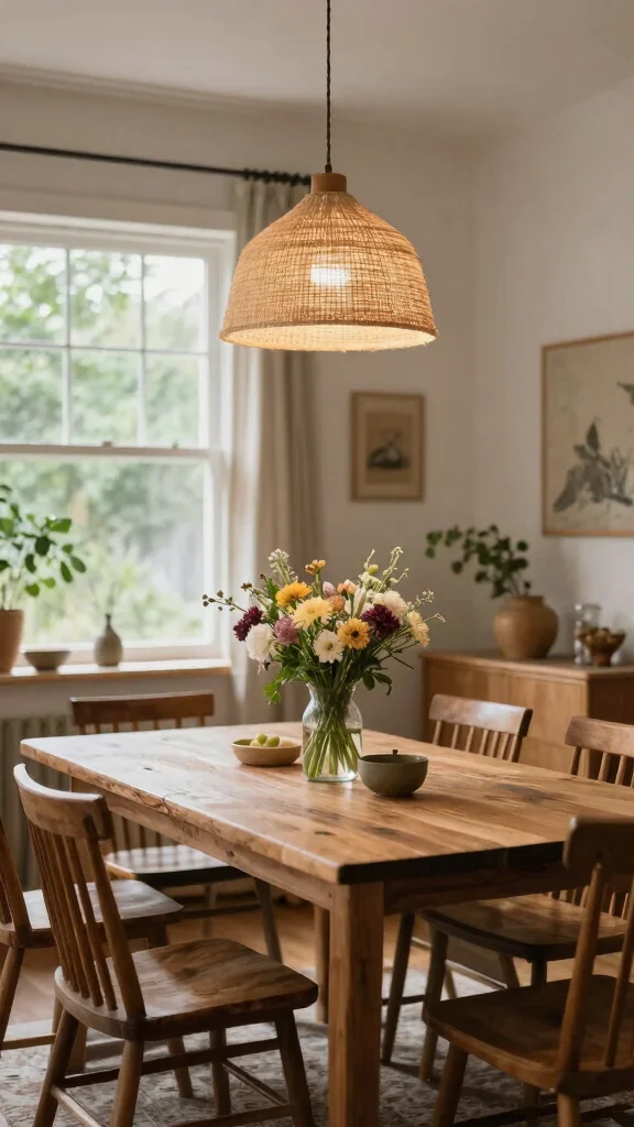 Opt for rustic pendant lights in earthy tones to create a warm, inviting atmosphere in your home.