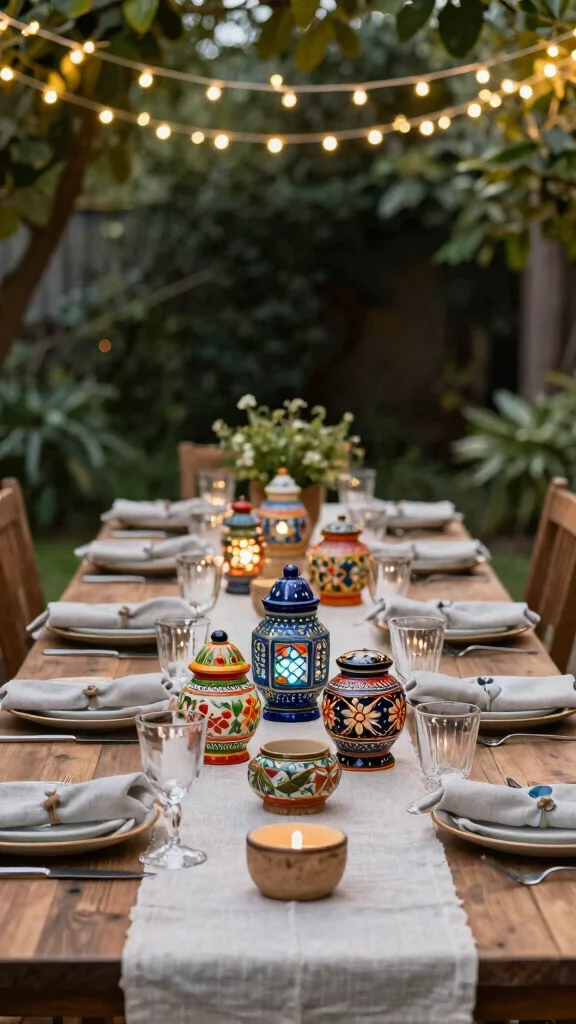 Utilize colorful ceramic lanterns as eye-catching centerpieces to enhance your decor and brighten spaces.
