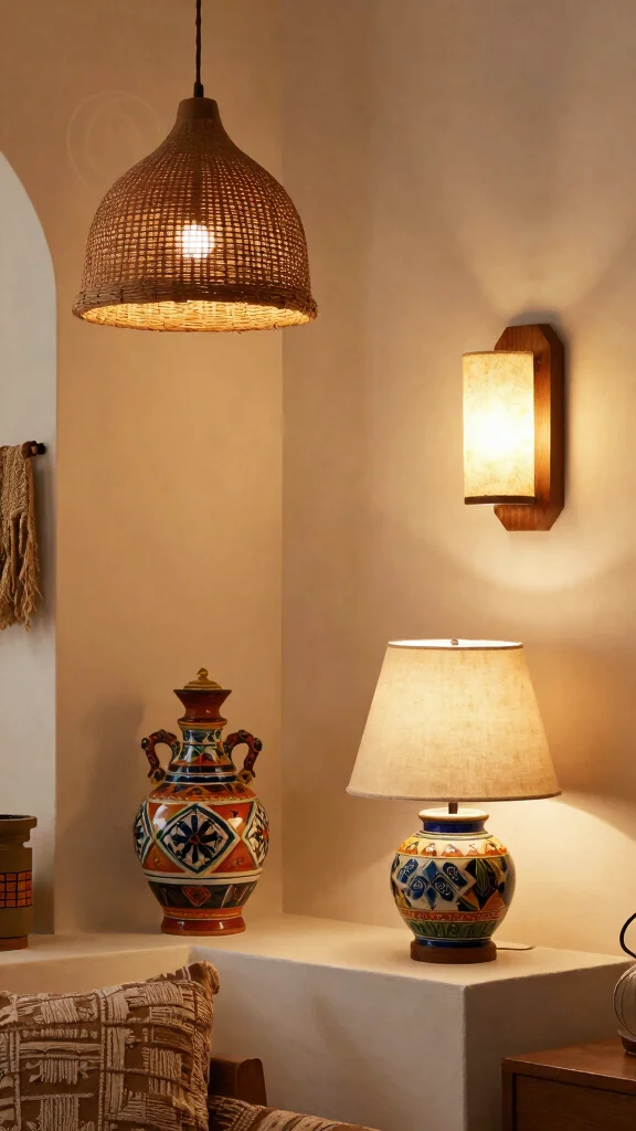 Opt for lamps with intricate carvings or native patterns to enhance their charm.