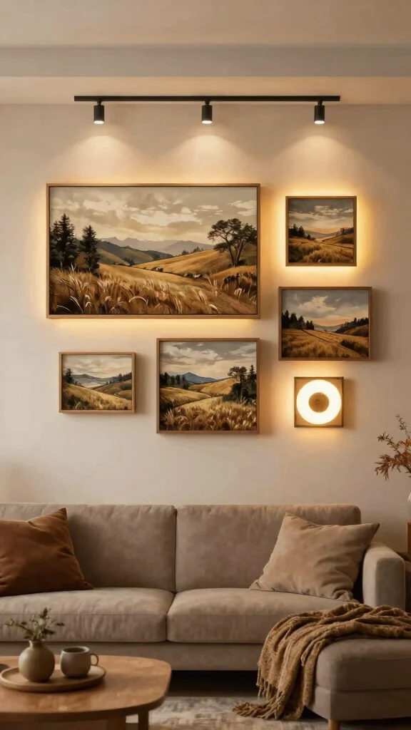 Integrate decorative wall art that includes lighting elements to create focal points and enhance ambiance.