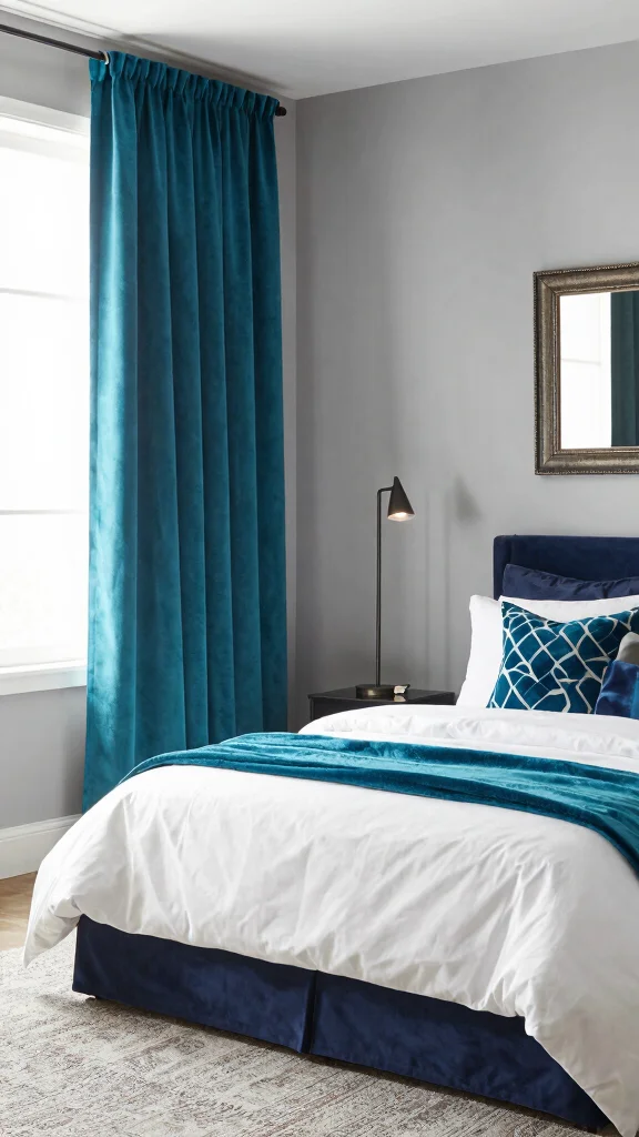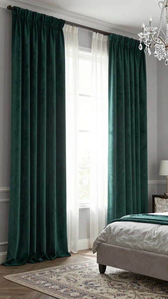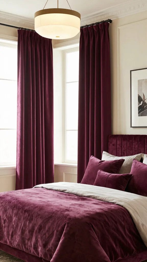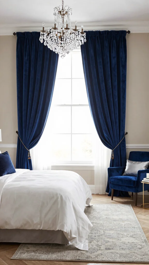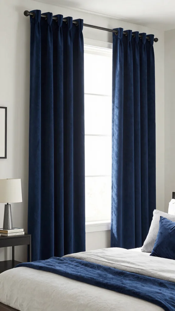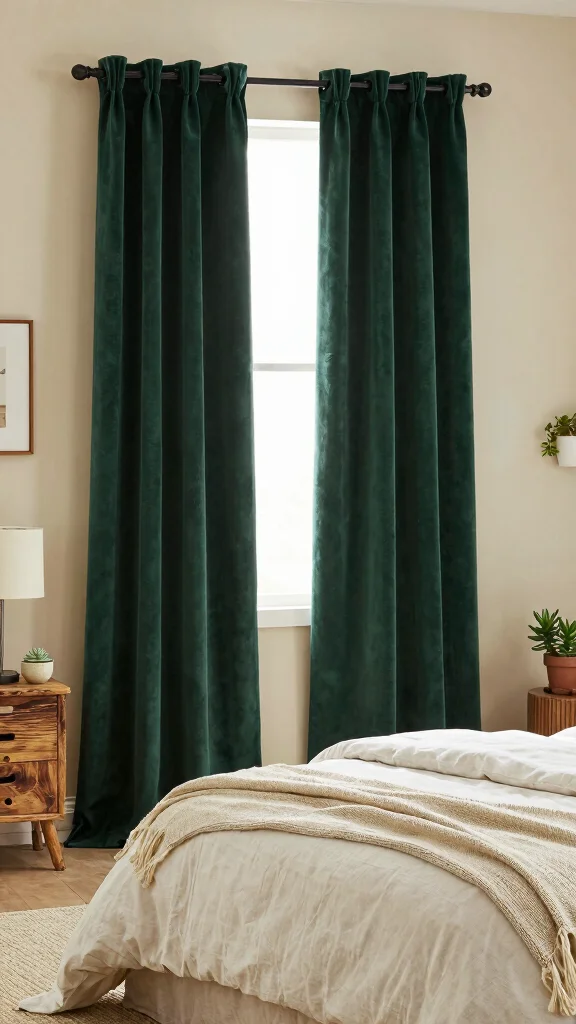Velvet curtains can anchor a powerful luxury bedroom decor. For a classic, opulent vibe, pair deep, jewel-toned velvet (emerald, sapphire, ruby) with warm neutrals like ivory or taupe. If you prefer modern contrast, try navy velvet against pale gray walls or charcoal curtains with soft blush accents. To keep things eco-friendly, choose paints and textiles with low-VOC finishes and coordinate with sustainable bedroom color schemes that you’ll love year after year. Add metallic accents in brass or copper and keep fabrics in home textiles within a cohesive palette to create harmony and depth.