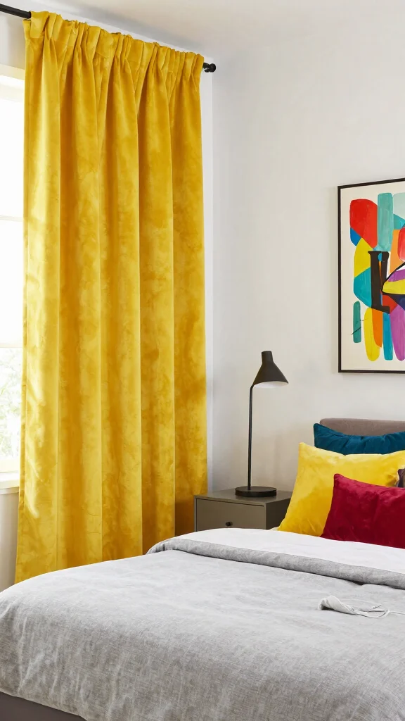 Incorporate rich jewel tones in your velvet curtains to create a luxurious and vibrant atmosphere in your bedroom.