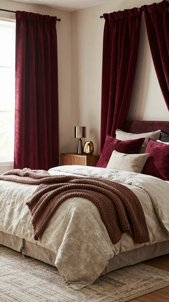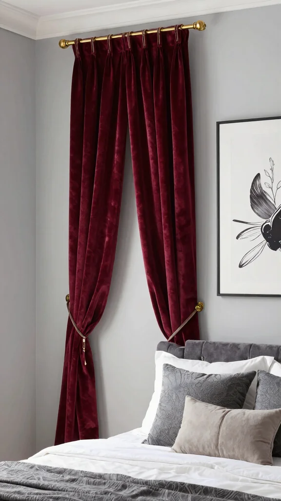 Combine velvet curtains with other materials to add depth and visual interest to your bedroom decor.