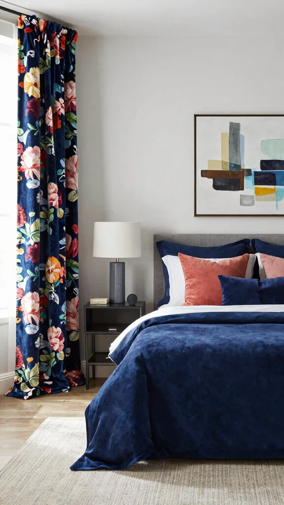 For those with a flair for the adventurous, bold patterned velvet curtains can serve as stunning focal points in your bedroom. Designs featuring geometrics or florals add personality and vibrancy, instantly transforming your space. Pair these eye-catching curtains with solid-colored bedding to maintain balance, allowing the patterns to stand out. Don’t hesitate to mix textured fabrics within the same color palette for a cohesive look that feels curated. Ensuring other decor elements remain understated allows the curtains to shine, harmonizing beautifully with the overall ambiance.